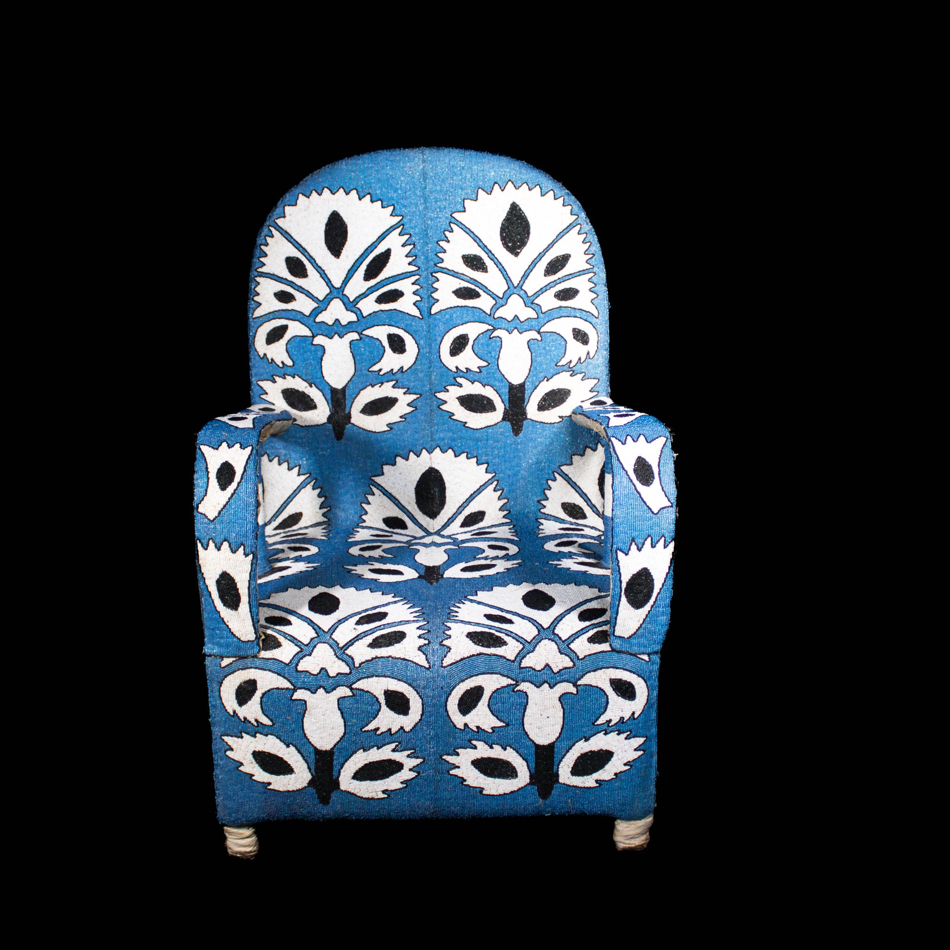 Each chair is carefully hand-beaded by talented artisans with vibrant patterns showcasing intricate African design.